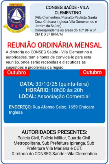 Hoje temos a reunião do CONSEG do nosso bairro! tragam suas demandas, participem!
